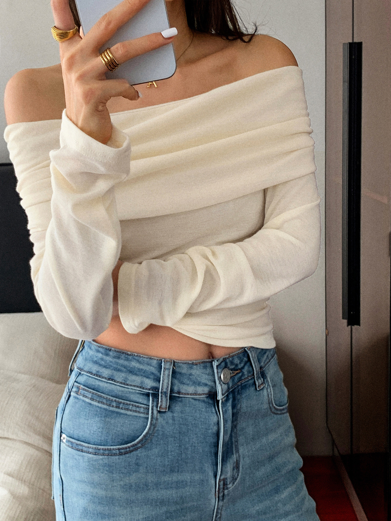 Casual Vacation Style Tube Top Long Sleeve T-shirt Women's Tops